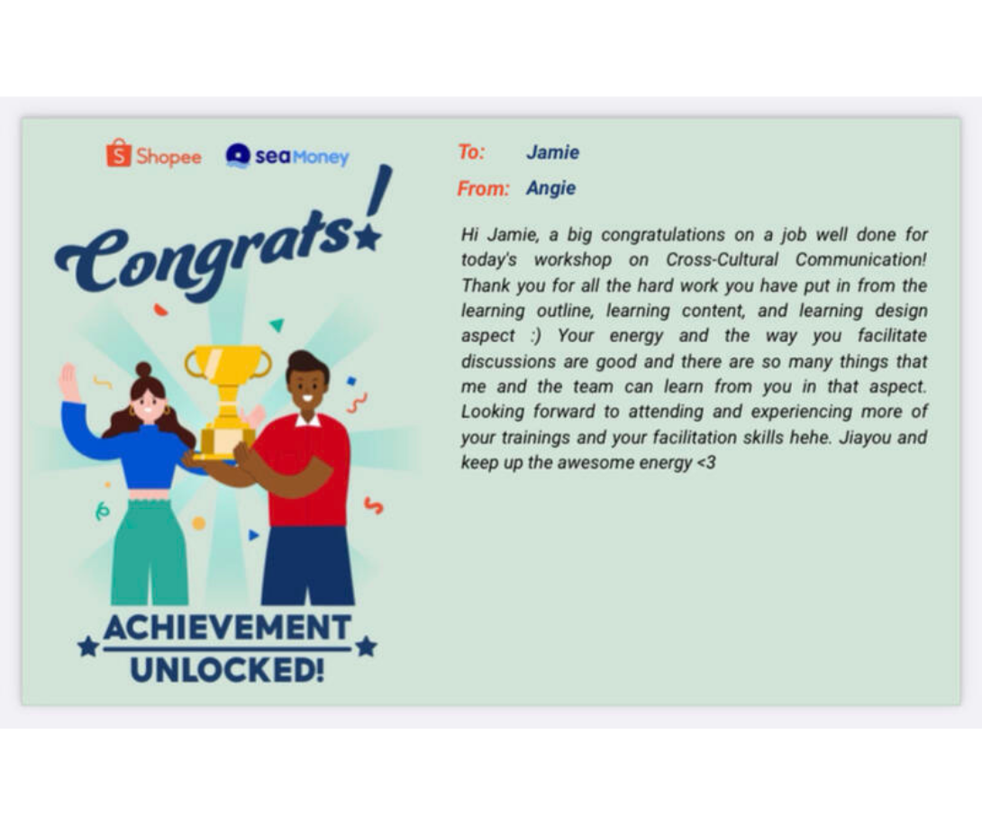 As a Learning Partner, I supports 8 Engineering and Product teams in the tech company in terms of their learning needs. This can range from soft skills learning such as cross-cultural communication as they often come from diverse backgrounds and cultures, train up the tech trainers who will in turn train their team members in engineering languages, as well as transforming complex, dry technical training contents through working with their teams into digestible, interesting, and engaging learning sessions.